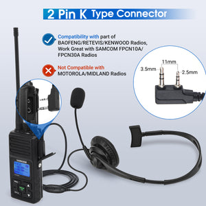 - Designed with Universal 2 Pin Connector: SAMCOM HSK01 single-sided headset compatible with to SAMCOM/Kenwood/BaoFeng/Retevis walkie talkies, and other 2 pin two-way radios
